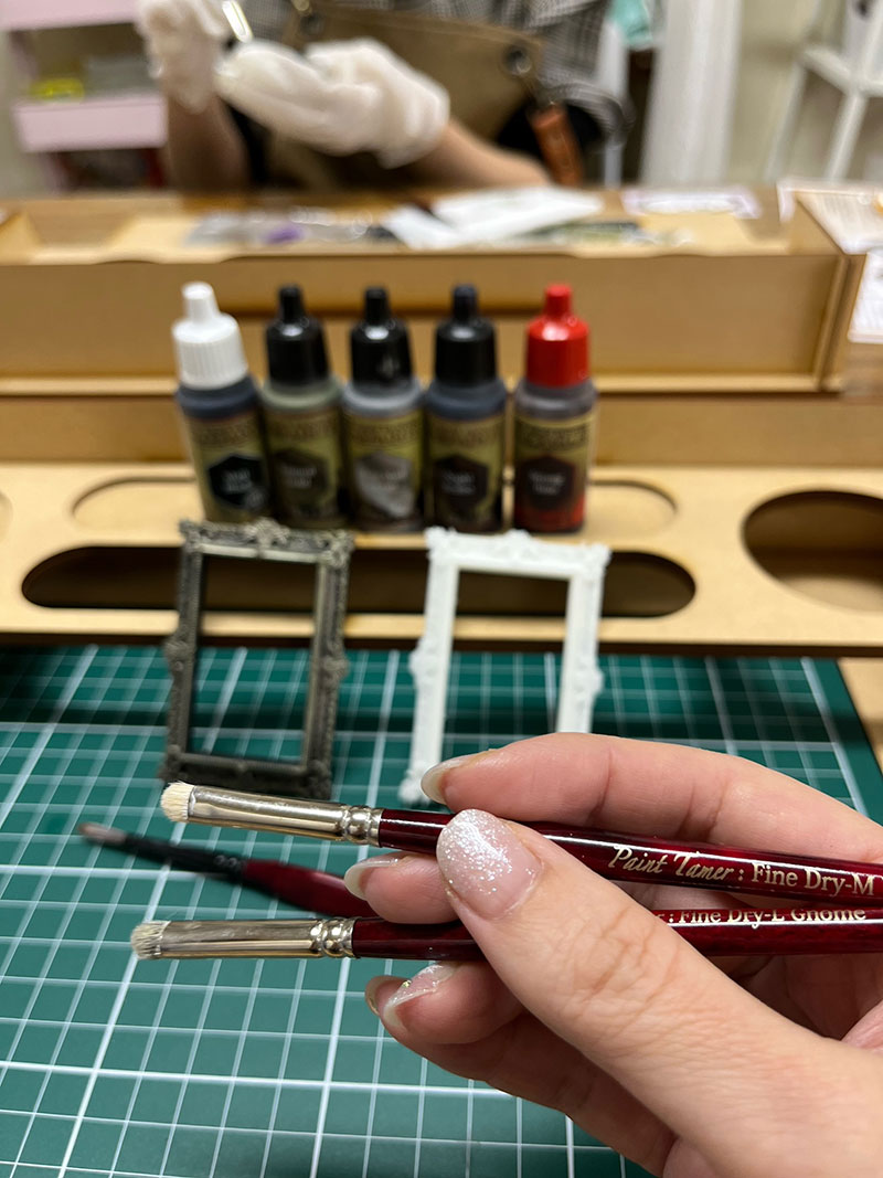 ドライブラシのテクニックで、樹脂製の額縁が金属にしか見えません✨