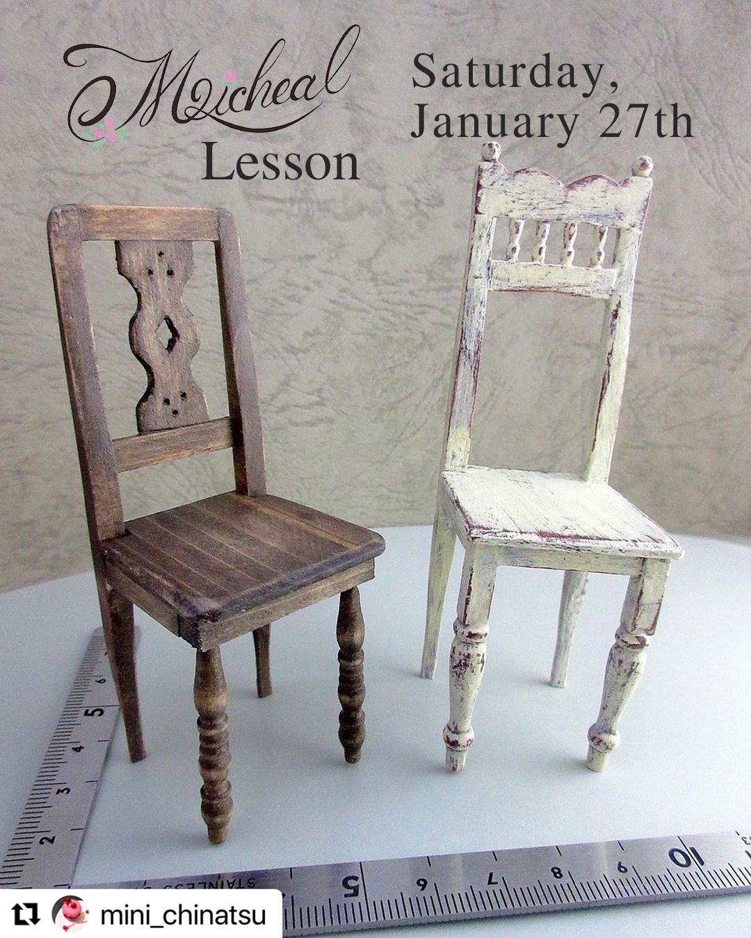 1月27日(土)にミシール様 @michealdollshouse でミニチュア椅子制作のワークショップを開催させて頂きます🙇♀️