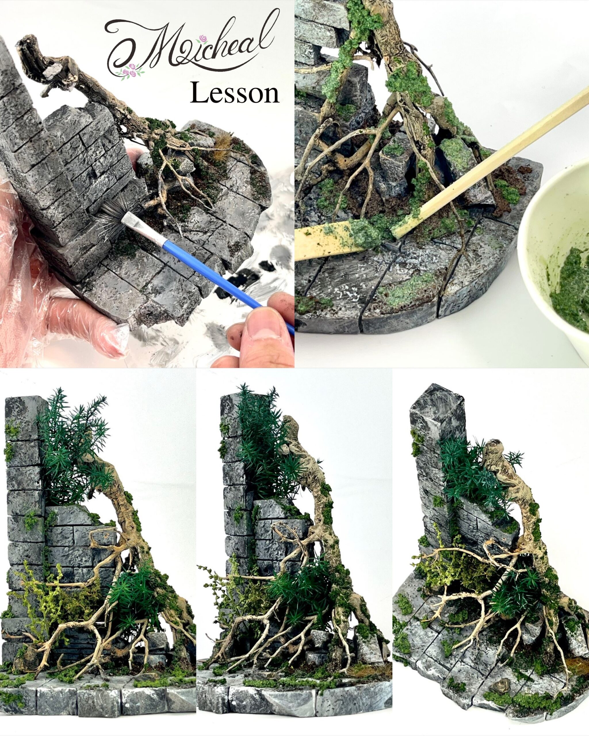 石こう板の扱い方から、彫り・塗り・組み立て、強度や経年表現の工夫、さらにコケや樹木の表現まで、盛りだくさんの内容となっています✨